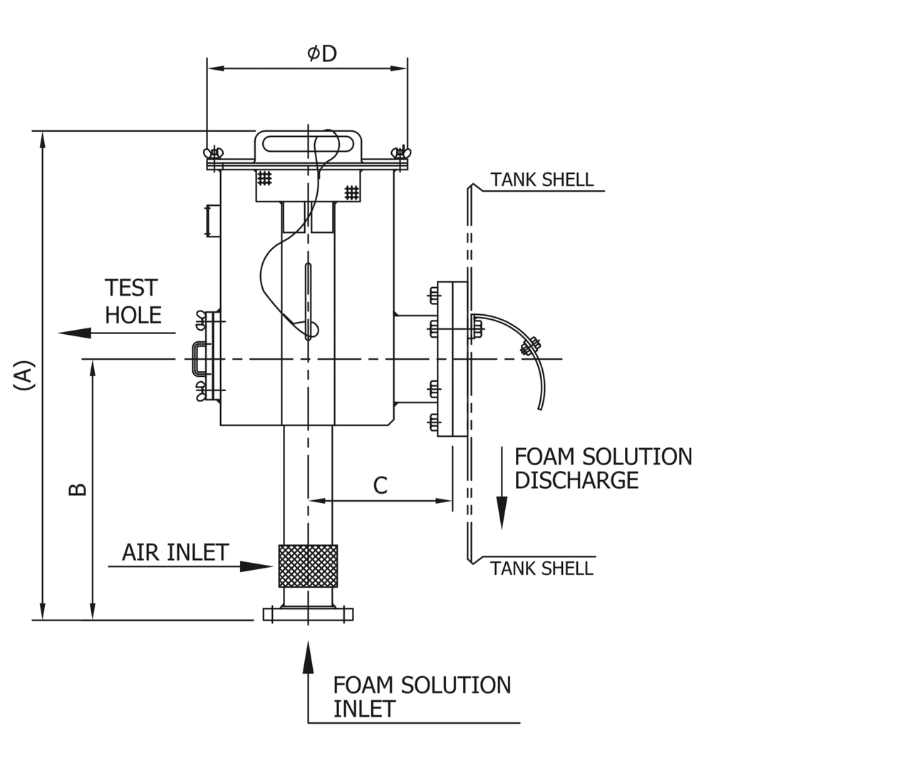 A deflector includes type II used for a cone roof tank and floating roof tank. Inlet pressure should be at least 3.5 barg or higher when installing a foam chamber.